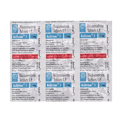 Acitrom 1 Tablet is an oral anticoagulant that helps prevent harmful blood clots in the legs, lungs, brain, and heart. It is used for deep vein thrombosis, pulmonary embolism, and stroke prevention.