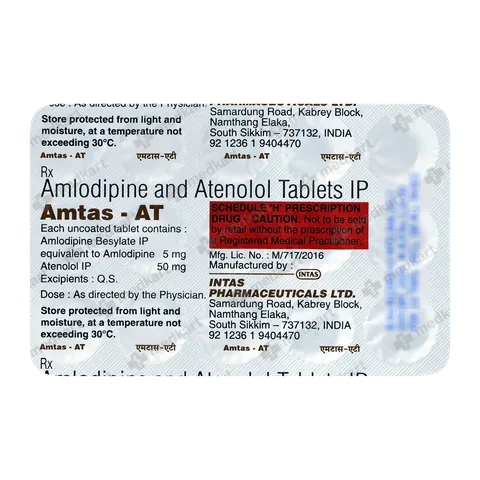 Amtas-AT Tablet is used to treat hypertension (high blood pressure) and angina. This is a combination of two medicines that controls blood pressure when a single medication is not effective. It helps to lower high blood pressure and thus reduces the chances of future heart attack and stroke.