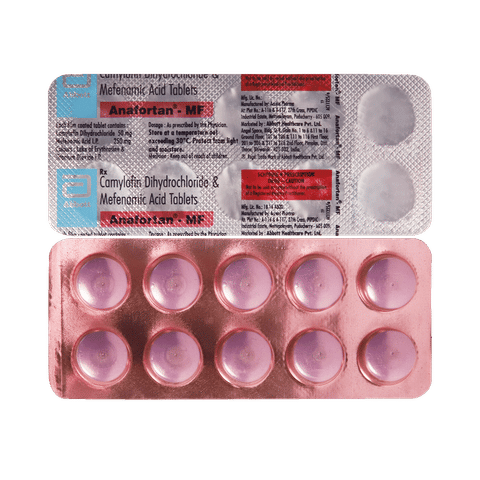 Anafortan-MF 50mg/250mg Tablet is a combination medicine used in the treatment of abdominal pain. It works effectively to reduce abdominal pain, bloating, discomfort and cramps by relaxing the muscles of the stomach and gut. It also blocks certain chemical messengers that cause pain and fever.