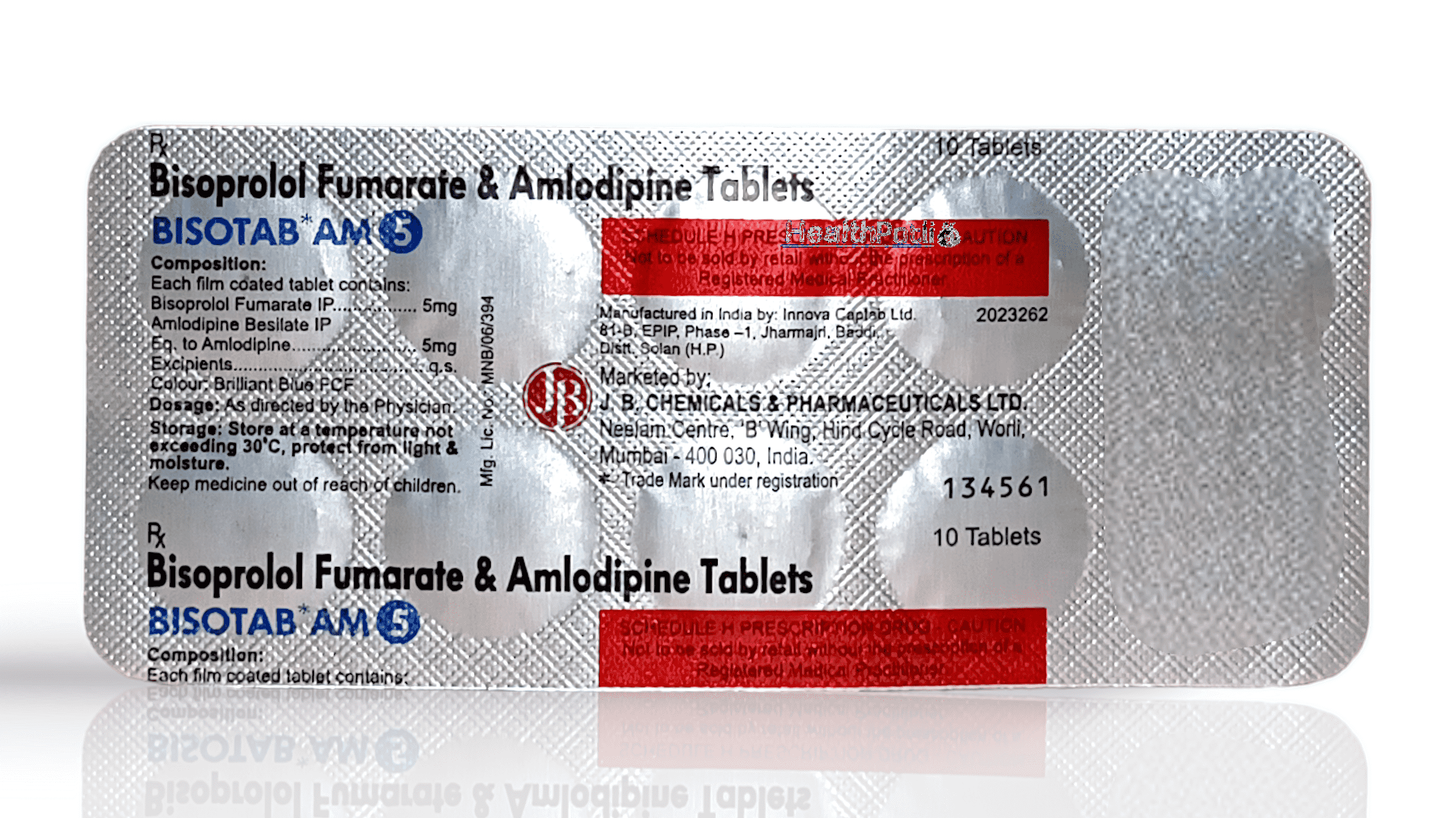 Bisotab AM 5mg/5mg Tablet is used to treat hypertension (high blood pressure). This is a combination of two medicines that control blood pressure when a single medication is not effective. It helps to lower high blood pressure and thus reduces the chances of future heart attack and stroke.