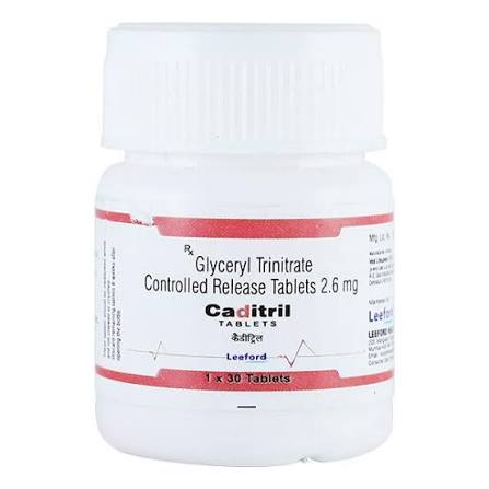 Caditril 6.4mg Tablet is used to treat and prevent heart-related chest pain (angina). Angina occurs when the heart muscle is not getting enough blood. This medicine works by relaxing and widening blood vessels so blood can flow more easily to the heart.