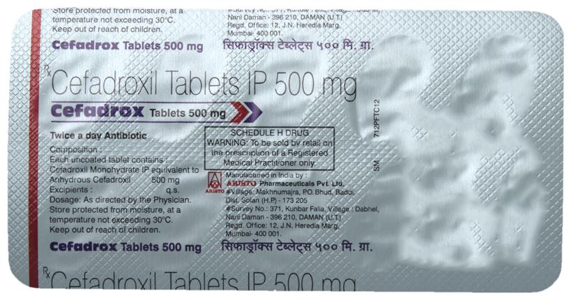 cefaDROX 500mg Tablet is an antibiotic medicine used to treat bacterial infections in your body. It is effective in infections of the throat, ears, urinary tract, skin, and soft tissues. It kills bacteria, which helps improve your symptoms and cure the infection.