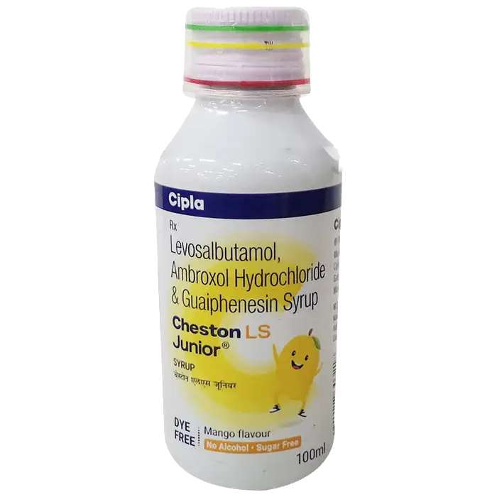 Cheston LS Syrup Junior Mango Sugar Free is used in the treatment of cough with mucus. It thins mucus in the nose, windpipe and lungs, making it easier to cough out. It also provides relief from runny nose, sneezing, itching, and watery eyes.