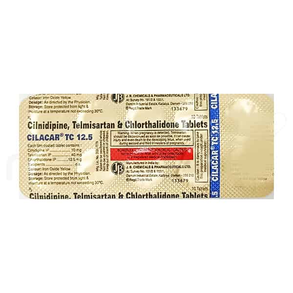 Cilacar TC 12.5 Tablet is a combination of medicines used to treat hypertension (high blood pressure) when a single medication is not effective. It helps to lower high blood pressure thus reduces chances of future heart attack and stroke.