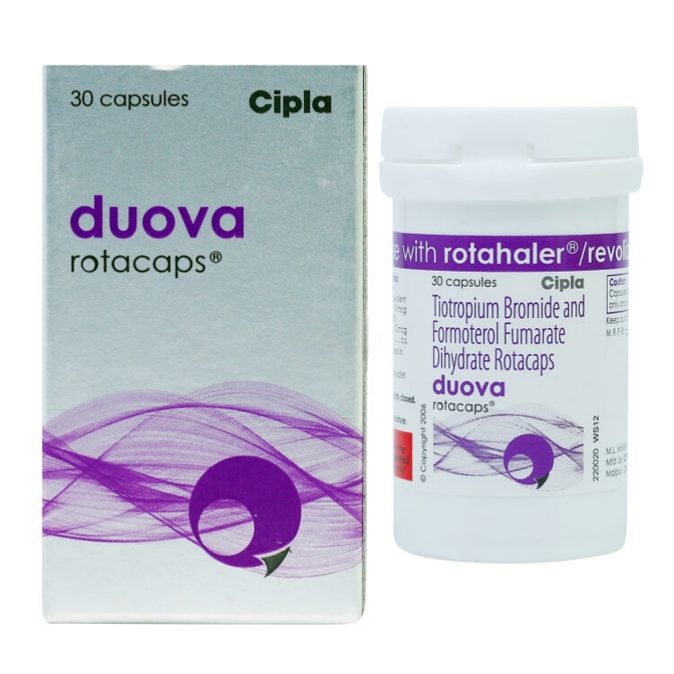DUova Rotacap is used to treat chronic obstructive pulmonary disorder (a lung disorder in which the flow of air to the lungs is blocked). It helps in relaxing the muscles of the air passages and making it easier to breathe. It relieves coughing, wheezing, and shortness of breath.