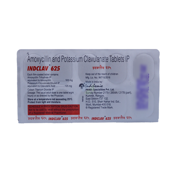 Indclav 625 Tablet is an antibiotic that helps your body fight infections caused by bacteria. It is used to treat infections of the lungs (e.g., pneumonia), the ear, the nasal sinus, the urinary tract, the skin, and the soft tissue. It will not work for viral infections such as the common cold.