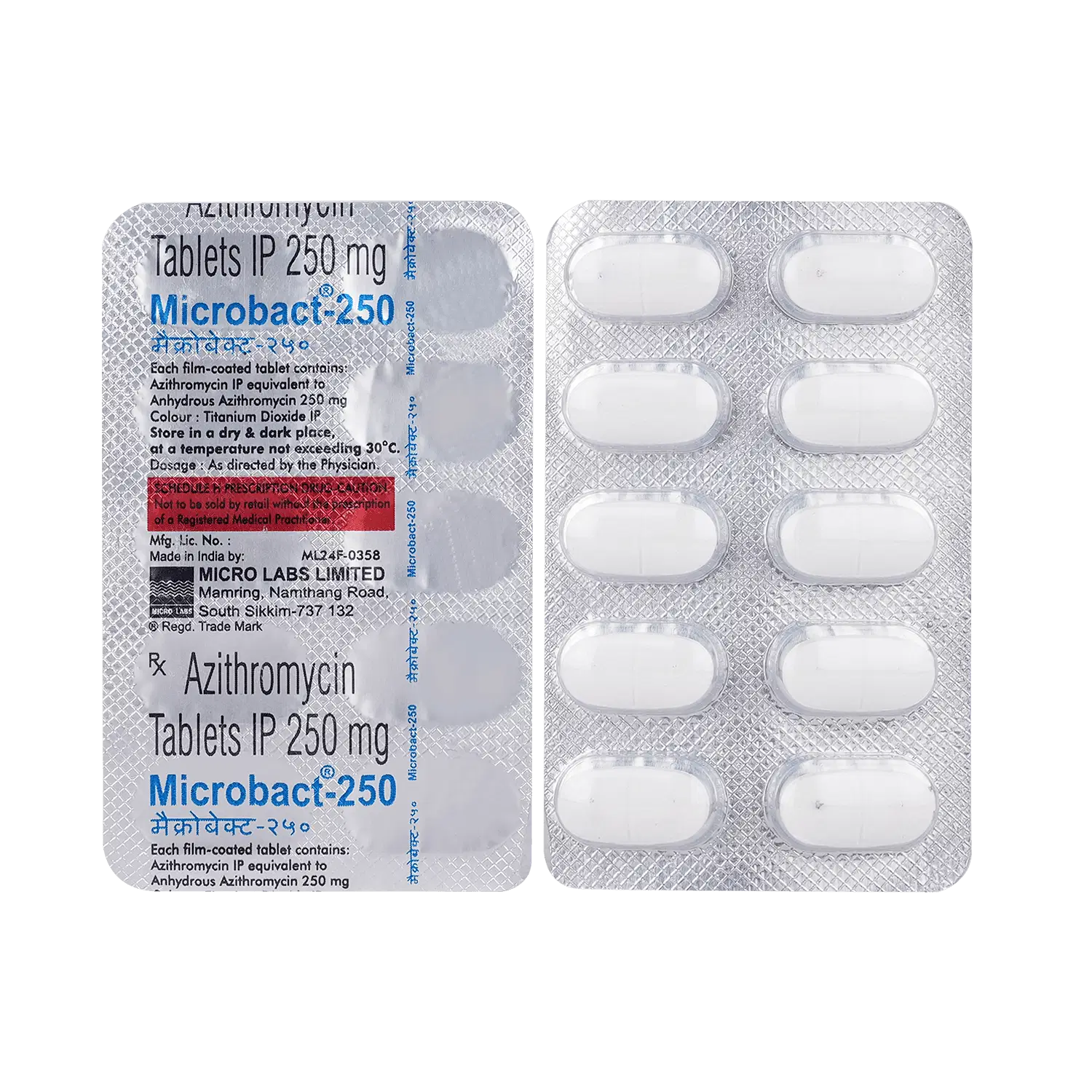 Microbact 250 Tablet is an antibiotic used to treat various types of bacterial infections of the respiratory tract, ear, nose, throat, lungs, skin, and eye in adults and children. It is also effective in typhoid fever and some sexually transmitted diseases like gonorrhea.