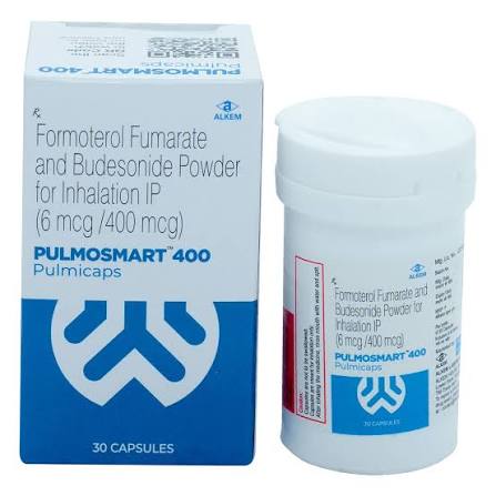 Pulmosmart 400 Pulmicaps is a combination of two medicines in one inhaler. It relieves the long-term symptoms of asthma and COPD, making breathing easier. It works by inhibiting the release of certain chemical messengers that cause inflammation (swelling) and relaxes the muscles in the airways.