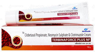 Terbinaforce-Plus NF Cream is a combination medicine used to treat various types of skin infections. It minimizes symptoms of inflammation such as redness, swelling, and itching. It also prevents the growth of infection-causing microorganisms to promote faster healing of infections.
