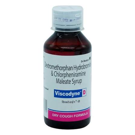 Viscodyne D Syrup is a combination of two medicines used in the treatment of dry cough. It can provide temporary relief of cough due to throat irritation, sneezing, and running nose. It works by reducing the activity of the brain’s cough center and blocking the effects of histamine.