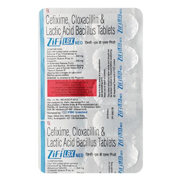Ingredient: Cefixime 200 mg+Cloxacillin 500 mg+Lactic Acid Bacillus 90 million spores